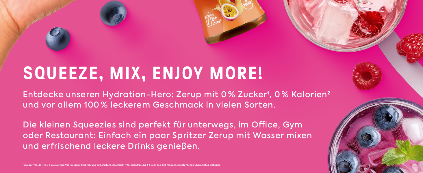 Der Geschmack ist unglaublich frisch und intensiv. Und das Beste: Keine Kalorien und kein Zucker!